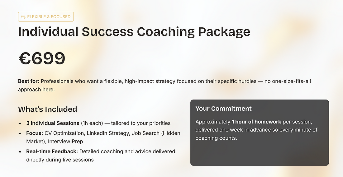 Every Career Journey is different. Select the package that matches your ambitions and let's start building your Dutch Career story together.